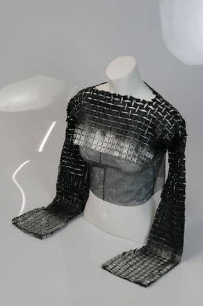 Explore Discaux: a fusion of auxetics, 3D printing, and performance fashion. Designed for bold expression and movement, each piece showcases innovative materials and sustainable design, crafted to shine under lights and stretch with the body.